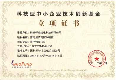 通過國家高新技術企業(yè)認證;獲得國家科技型中小企業(yè)技術創(chuàng)新基金資助; 國內(nèi)首套40噸吊鋼坯用電永磁吊具成功出口南美.